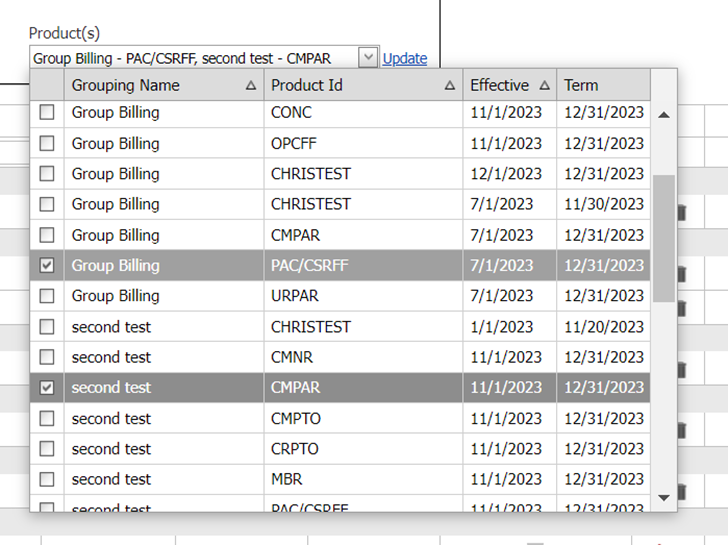 The reimbursements section has been updated to include groupings now. This enhancement allows users to see which grouping a product is associated with, aligning with the layout of the product section in the plan year. For additional clarity, we have also updated the product dropdown to display these groupings.