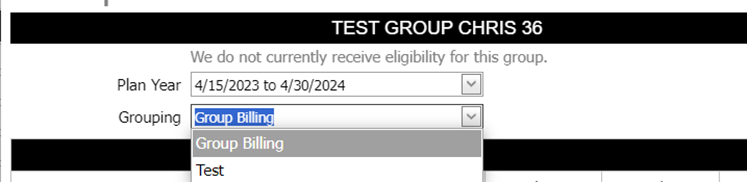 - On the plan year page, you will notice a new section on the top header called grouping. Click on it.