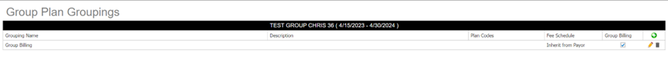 - You can notice that the 'Group Billing' field is already checked. This simply indicates that this is the grouping that would be used for patients who don't have a plan code associated with their eligibility. Users will have the ability to choose/change which grouping will be the “Group Billing” grouping, but only one grouping can have this checked at a time since it can get a bit confusing if multiple groupings have this checked. Lastly, if a grouping is marked as the ‘Group Billing” grouping, then users cannot add plan codes since this grouping is for patients who don’t have plan codes associated with other groupings.
