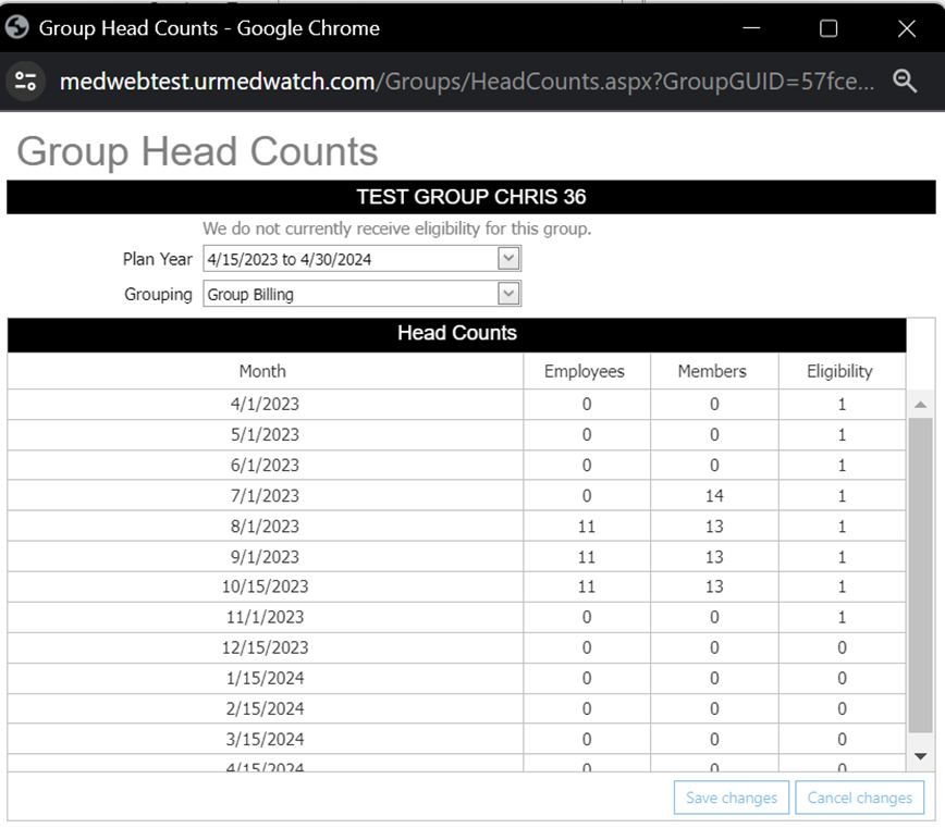 Upon accessing the headcounts page (available on multiple pages), you will observe that the 'Product by Headcounts' section has been removed. In its place, we have introduced a new 'Groupings' dropdown. This feature enables users to add employee and member headcounts for the specific grouping they view. It also automatically incorporates headcounts for patients with plan codes linked to that particular grouping.