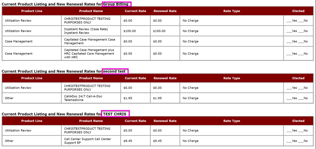 Group Renewal Price Lists: