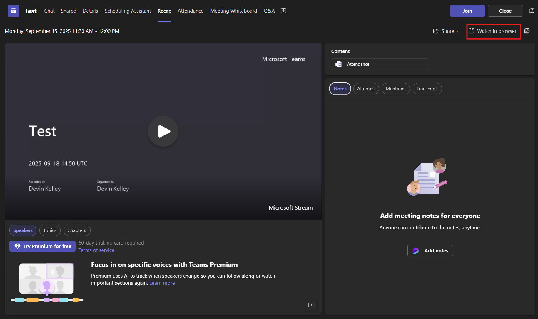 Step 6: Click on the option "Watch in Browser" from the top-right to access Microsoft Stream