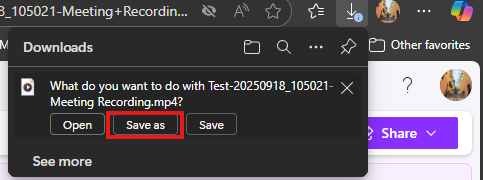 Note: this message is a notification that ClipChamp features will not carry over since it is a video download only. If those are needed, share this link instead of downloading the video.